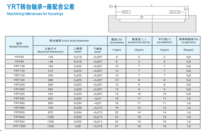 Product Features | Axial radial bearings YRT are axial and radial combined cylindrical roller bearings, including two thrust needle roller bearings and a radial cylindrical roller bearing with the combination of axial and radial preload, For the convenience of transportation and fixing, two or three symmetrical screws are fastened to the two rings in order to prevent rollers and rings generating collisions which influence bearing accuracy. | |||||||||||||||||